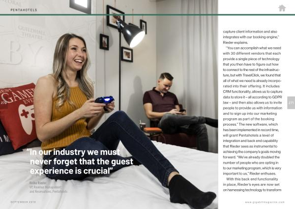 “ You can accomplish what we need with 30 different vendors that each provide a single piece of technology that you then have to figure out how to connect to the rest of the infrastructure , but with TravelClick , we found that all of what we need is already incorporated into their offering . It includes CRM functionality , allows us to capture data to store it – all according to GDPR law – and then also allows us to invite people to provide us with information and to sign up into our marketing program as part of the booking process .” The new software , which has been implemented in record time , will grant Pentahotels a level of integration and back end capability that Rieder sees as instrumental to achieving the company ’ s goals moving forward . “ We ’ ve already doubled the number of people who are opting in to our marketing program , which is very important to us ,” Rieder enthuses .