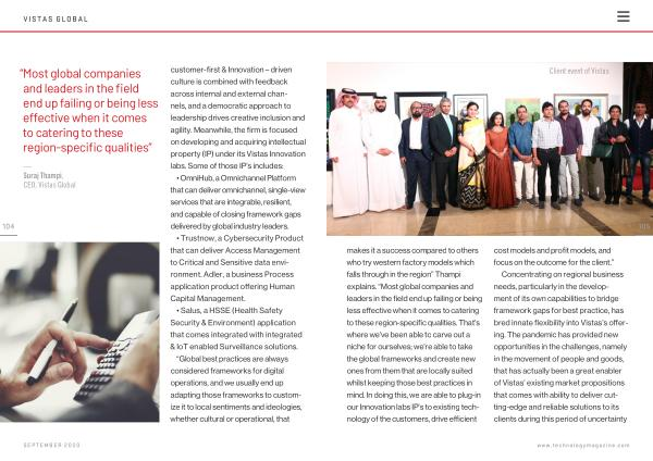 105 makes it a success compared to others who try western factory models which falls through in the region ” Thampi explains . “ Most global companies and leaders in the field end up failing or being less effective when it comes to catering to these region-specific qualities . That ’ s where we ’ ve been able to carve out a niche for ourselves ; we ’ re able to take the global frameworks and create new ones from them that are locally suited whilst keeping those best practices in mind . In doing this , we are able to plug-in our Innovation labs IP ’ s to existing technology of the customers , drive efficient cost models and profit models , and focus on the outcome for the client .”