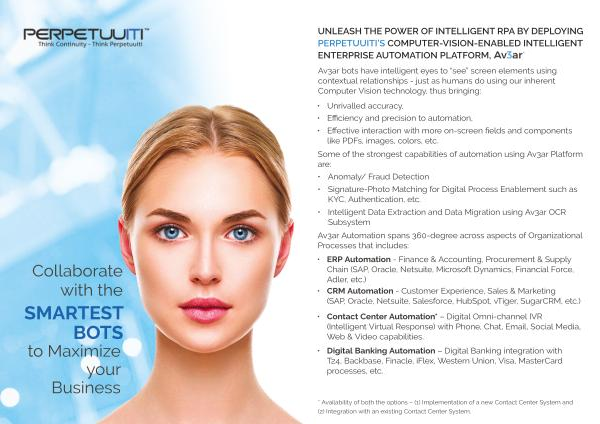 UNLEASH THE POWER OF INTELLIGENT RPA BY DEPLOYING PERPETUUITI ’ S COMPUTER-VISION-ENABLED INTELLIGENT ENTERPRISE AUTOMATION PLATFORM ,