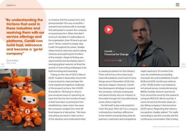 Centili itself is also well-poised to meet this goal . After all , it is a company motivated by creating a difference in the market and projecting what its partners , customers and ecosystems might need up to 12 months from now . Its credentials as a leading innovator are well established . In both 2018 and 2019 , Centili was rated as a Tier 1 DCB vendor in an independent annual survey conducted among MNOs ( mobile network operators ) from around the world by the research company ROCCO . More recently , it came forward as the best rated carrier billing company in its Innovators 2020 report . Regarding this industry recognition , Vasiljev added , “ It ’ s really rewarding to see the curiosity and the continuous conversation that is being