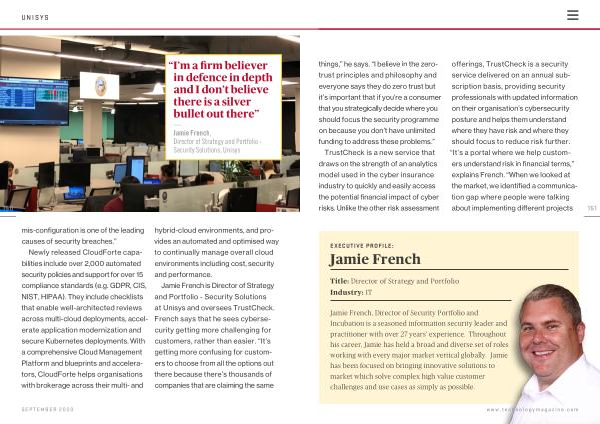 Jamie French , Director of Security Portfolio and Incubation is a seasoned information security leader and practitioner with over 27 years ’ experience . Throughout his career , Jamie has held a broad and diverse set of roles working with every major market vertical globally . Jamie has been focused on bringing innovative solutions to market which solve complex high value customer challenges and use cases as simply as possible . www . technologymagazine . com