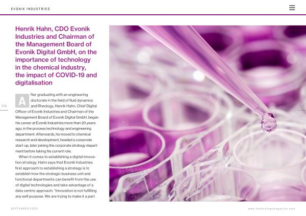 Henrik Hahn , CDO Evonik Industries and Chairman of the Management Board of Evonik Digital GmbH , on the importance of technology in the chemical industry , the impact of COVID-19 and digitalisation