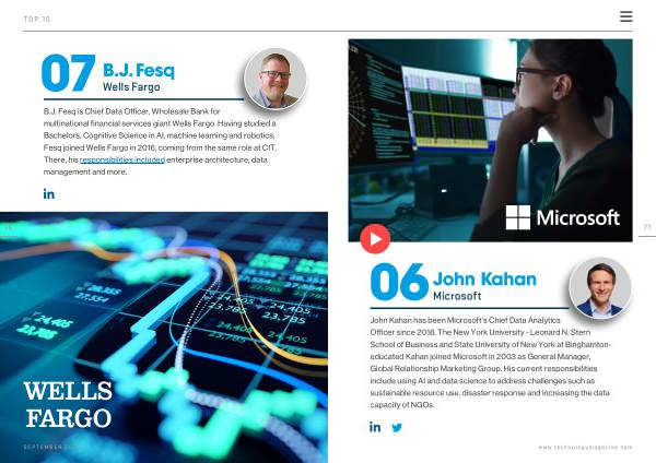 John Kahan has been Microsoft ’ s Chief Data Analytics Officer since 2018 . The New York University - Leonard N . Stern School of Business and State University of New York at Binghamtoneducated Kahan joined Microsoft in 2003 as General Manager , Global Relationship Marketing Group . His current responsibilities include using AI and data science to address challenges such as sustainable resource use , disaster response and increasing the data capacity of NGOs . www . technologymagazine . com