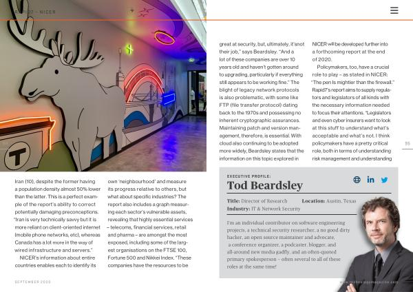 NICER ’ s information about entire countries enables each to identify its own ‘ neighbourhood ’ and measure its progress relative to others , but what about specific industries ? The report also includes a graph measuring each sector ’ s vulnerable assets , revealing that highly essential services – telecoms , financial services , retail and pharma – are amongst the most exposed , including some of the largest organisations on the FTSE 100 , Fortune 500 and Nikkei Index . “ These companies have the resources to be