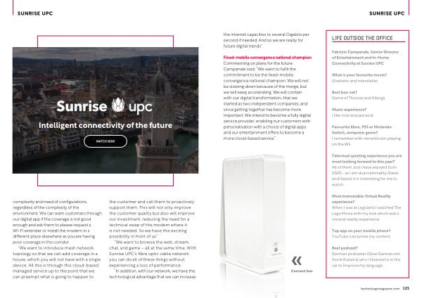 “ We want to introduce mesh network topology so that we can add coverage in a house , which you will not have with a single device . All this is through this cloud-based managed service up to the point that we can preempt what is going to happen to the customer and call them to proactively support them . This will not only improve the customer quality but also will improve our investment , reducing the need for a technical swap of the modem where it is not needed . So we have this exciting possibility in front of us ”.