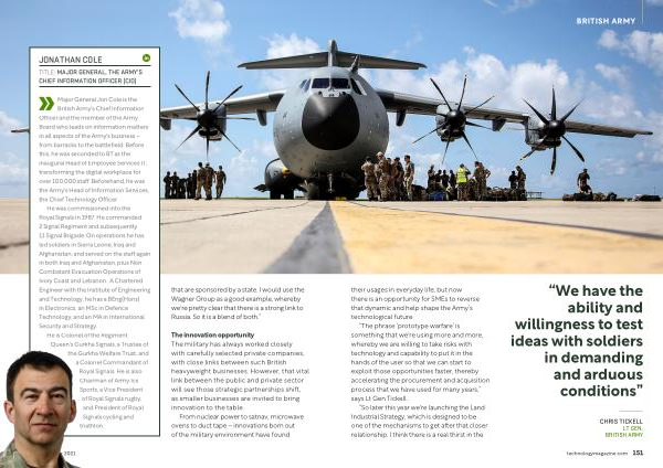 BRITISH ARMY their usages in everyday life , but now there is an opportunity for SMEs to reverse that dynamic and help shape the Army ’ s technological future .