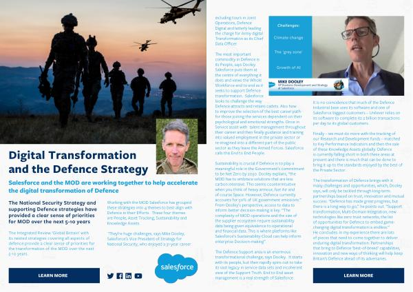 Salesforce and the MOD are working together to help accelerate the digital transformation of Defence