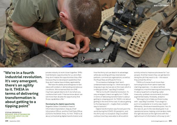 Developing the digital opportunity Brigadier Stefan Crossfield is Head of Information Exploitation , Deputy Chief Information Officer , and the Chief Data Officer ( CDO ) for the British Army . For him , THEIA is all about orchestrating digital transformation and