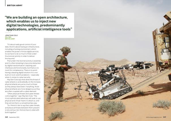 “ Often physical threats and cyber threats come together ,” says Maj Gen Cole . “ The most sophisticated adversary will seek to use physical and virtual means to attack us , and they will do that in a complimentary way .