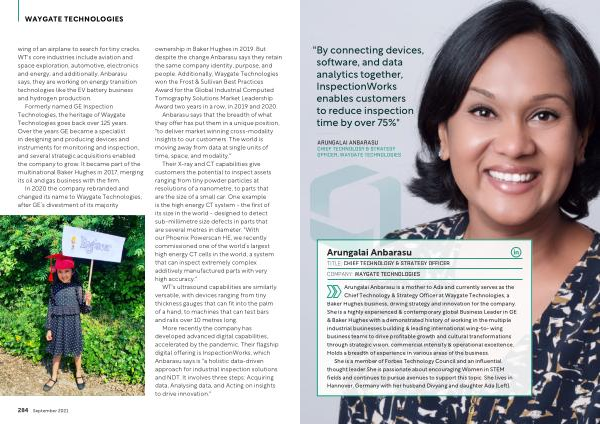 Chief Technology & Strategy Officer at Waygate Technologies , a Baker Hughes business , driving strategy and innovation for the company . She is a highly experienced & contemporary global Business Leader in GE & Baker Hughes with a demonstrated history of working in the multiple industrial businesses building & leading international wing-to- wing business teams to drive profitable growth and cultural transformations through strategic vision , commercial intensity & operational excellence . Holds a breadth of experience in various areas of the business .
