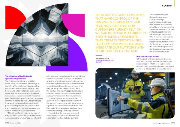 The critical benefits of industrial cybersecurity protection The first important thing to establish with Claroty ’ s customers , Chassar says , is identifying the assets they have operating within their industrial environment . This is because , he adds , customers aren ’ t always aware that , say , their heating controls are connected to this environment . The same goes for engineering workstations , controllers , sensors , and other devices . Chassar advises they need to start with finding out which parts of their operation are connected to their industrial environment , because you cannot protect what you cannot see .