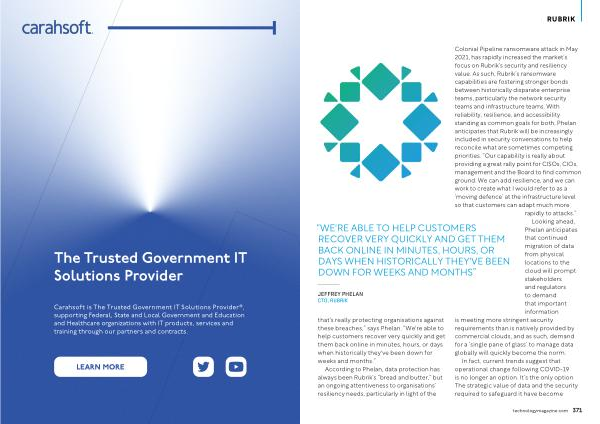 Carahsoft is The Trusted Government IT Solutions Provider ®, supporting Federal , State and Local Government and Education and Healthcare organizations with IT products , services and training through our partners and contracts .