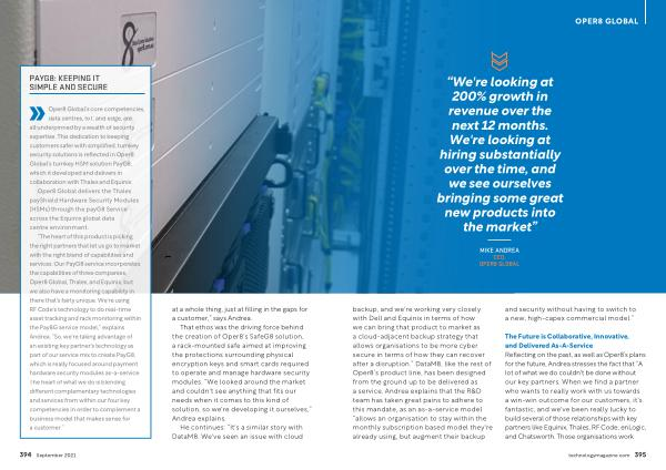 backup , and we ' re working very closely with Dell and Equinix in terms of how we can bring that product to market as a cloud-adjacent backup strategy that allows organisations to be more cyber secure in terms of how they can recover after a disruption .” DataM8 , like the rest of Oper8 ’ s product line , has been designed from the ground up to be delivered as a service . Andrea explains that the R & D team has taken great pains to adhere to this mandate , as an as-a-service model “ allows an organisation to stay within the monthly subscription based model they ' re already using , but augment their backup and security without having to switch to a new , high-capex commercial model .”