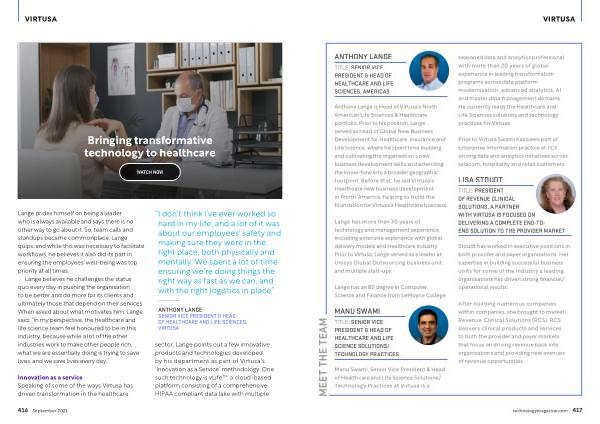 Anthony Lange is Head of Virtusa ’ s North American Life Sciences & Healthcare portfolio . Prior to his position , Lange served as head of Global New Business Development for Healthcare , Insurance and Life Science , where he spent time building and cultivating the organisation ’ s new business development skills and extending the know-how into a broader geographic footprint . Before that , he led Virtusa ' s Healthcare new business development in North America , helping to build the foundation for Virtusa ’ s Healthcare business .