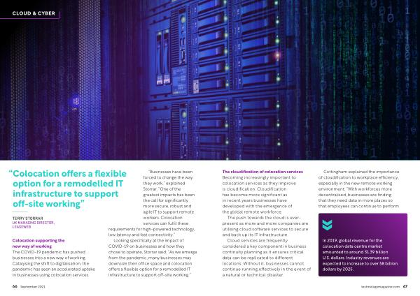 “ Businesses have been forced to change the way they work ,” explained Storrar . “ One of the greatest impacts has been the call for significantly more secure , robust and agile IT to support remote workers . Colocation services can fulfil these requirements for high-powered technology , low latency and fast connectivity .”