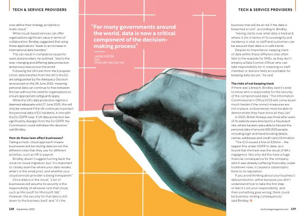 While cloud-based services can offer organisations significant value in terms of collaboration , Bindley suggested that using these applications “ leads to an increase in international data transfers ”.