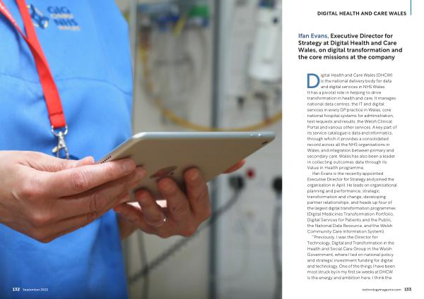 Ifan Evans , Executive Director for Strategy at Digital Health and Care Wales , on digital transformation and the core missions at the company