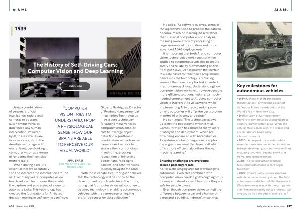 “ When driving a car , it ’ s essential that we accurately see and interpret the information around us . Over many years , computer vision has developed techniques that enable the capture and processing of video to automate tasks . This technology has created the foundations for AI-based decision making in self-driving cars ,” says