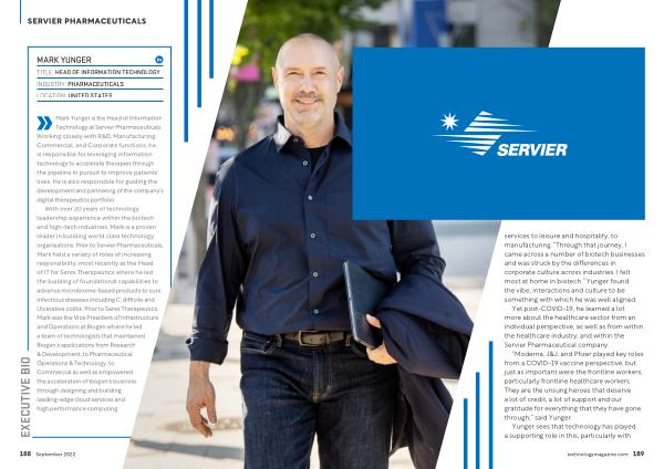 services to leisure and hospitality , to manufacturing . “ Through that journey , I came across a number of biotech businesses and was struck by the differences in corporate culture across industries . I felt most at home in biotech .” Yunger found the vibe , interactions and culture to be something with which he was well aligned . Yet post-COVID-19 , he learned a lot more about the healthcare sector from an individual perspective , as well as from within the healthcare industry , and within the Servier Pharmaceutical company .