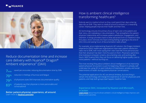 Reduce documentation time and increase care delivery with Nuance ® Dragon ® Ambient eXperience ™ ( DAX )
