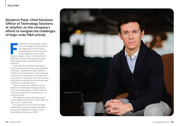 Benjamin Pipat , Chief Solutions Officer of Technology Solutions at Jellyfish , on the company ’ s efforts to navigate the challenges of large-scale M & A activity