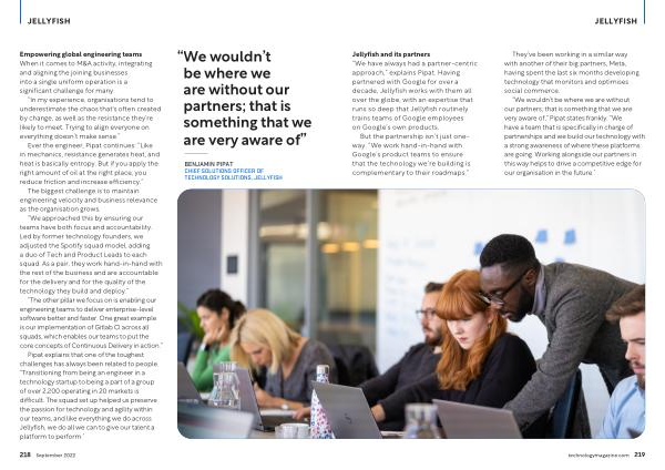 Jellyfish and its partners “ We have always had a partner-centric approach ,” explains Pipat . Having partnered with Google for over a decade , Jellyfish works with them all over the globe , with an expertise that runs so deep that Jellyfish routinely trains teams of Google employees on Google ’ s own products .