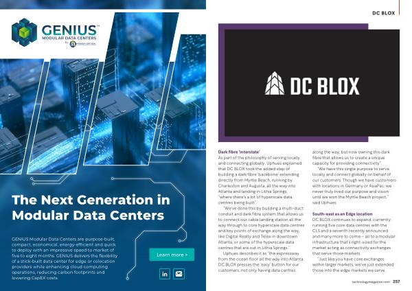 DC BLOX Dark fibre ‘ interstate ’ As part of the philosophy of serving locally and connecting globally , Uphues explained that DC BLOX took the added step of building a dark fibre ‘ backbone ’ extending directly from Myrtle Beach , running by Charleston and Augusta , all the way into Atlanta and landing in Lithia Springs , “ where there ' s a lot of hyperscale data centres being built ”.