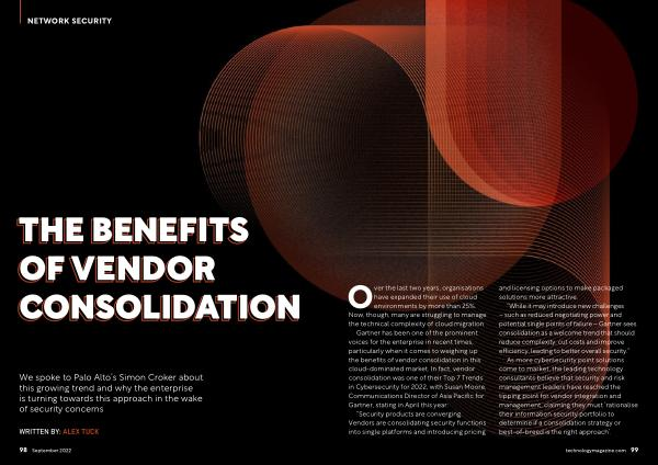 Gartner has been one of the prominent voices for the enterprise in recent times , particularly when it comes to weighing up the benefits of vendor consolidation in this cloud-dominated market . In fact , vendor consolidation was one of their Top 7 Trends in Cybersecurity for 2022 , with Susan Moore , Communications Director of Asia Pacific for Gartner , stating in April this year :