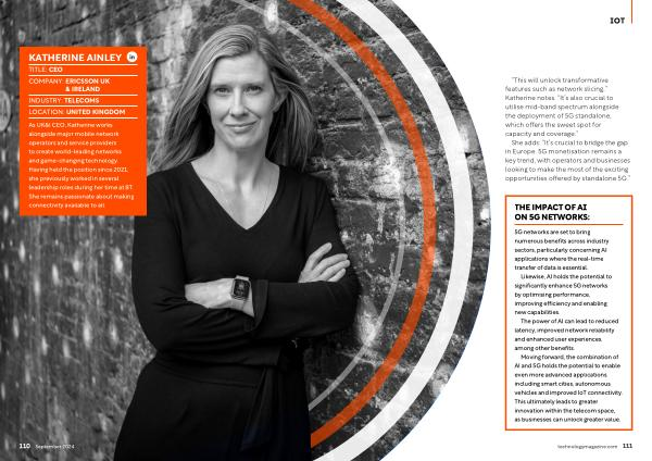 As UK & I CEO , Katherine works alongside major mobile network operators and service providers to create world-leading networks and game-changing technology . Having held the position since 2021 , she previously worked in several leadership roles during her time at BT . She remains passionate about making connectivity available to all .