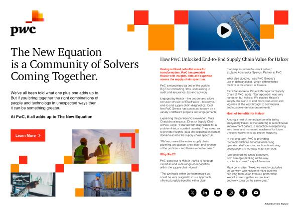 Engaged by Halcor – the copper and alloys extrusion division of ElvalHalcor – to carry out end-to-end supply chain diagnostics , local firm PwC Greece has continued to work on a variety of different projects and engagements .