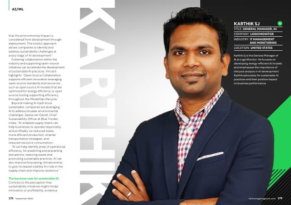 Karthik Sj is the General Manager of AI at LogicMonitor . He focuses on developing energy-efficient AI models and emphasises the importance of lifecycle analysis in AI development . Karthik advocates for sustainable AI practices and their positive impact on business performance .