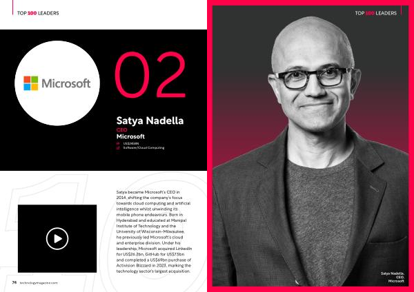 Satya became Microsoft ’ s CEO in 2014 , shifting the company ’ s focus towards cloud computing and artificial intelligence whilst unwinding its mobile phone endeavours . Born in Hyderabad and educated at Manipal Institute of Technology and the University of Wisconsin-Milwaukee , he previously led Microsoft ’ s cloud and enterprise division . Under his leadership , Microsoft acquired LinkedIn for US $ 26.2bn , GitHub for US $ 7.5bn and completed a US $ 69bn purchase of Activision Blizzard in 2023 , marking the technology sector ’ s largest acquisition .