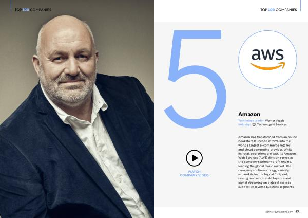 Technology Leader: Werner Vogels Industry: Technology & Services 5Amazon has transformed from an online WATCH COMPANY VIDEO bookstore launched in 1994 into the world’ s largest e-commerce retailer and cloud computing provider. While its retail operations are vast, its Amazon Web Services( AWS) division serves as the company’ s primary profit engine, leading the global cloud market. The company continues to aggressively expand its technological footprint, driving innovation in AI, logistics and digital streaming on a global scale to support its diverse business segments.